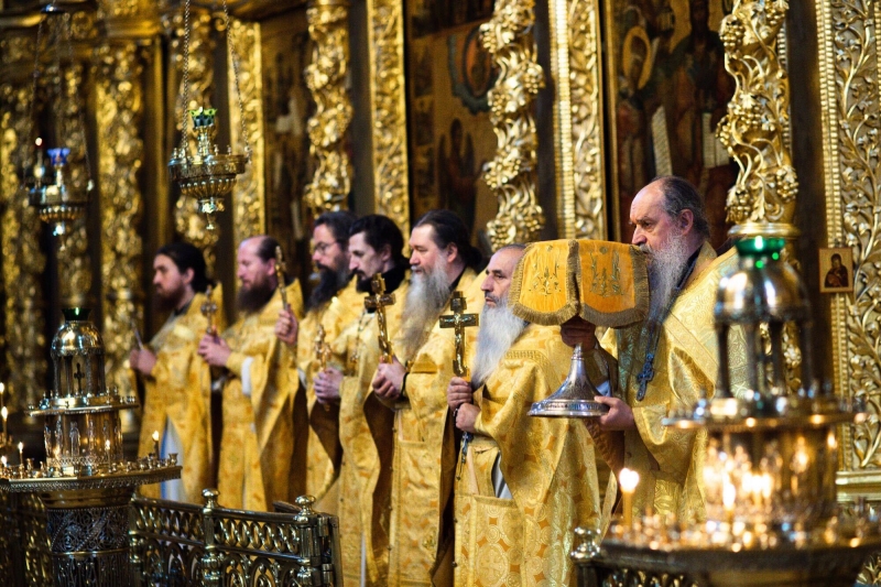 Праздничное всенощное бдение в Успенском соборе Троице-Сергиевой обители возглавил архимандрит Таврион (Иванов).