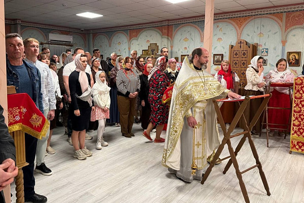 Для сотрудников строящейся атомной электростанции «Аккую»  в Пасхальную ночь богослужение совершил окормляющий общину иеромонах Палладий (Быстров). За богослужением молились более 170 человек.