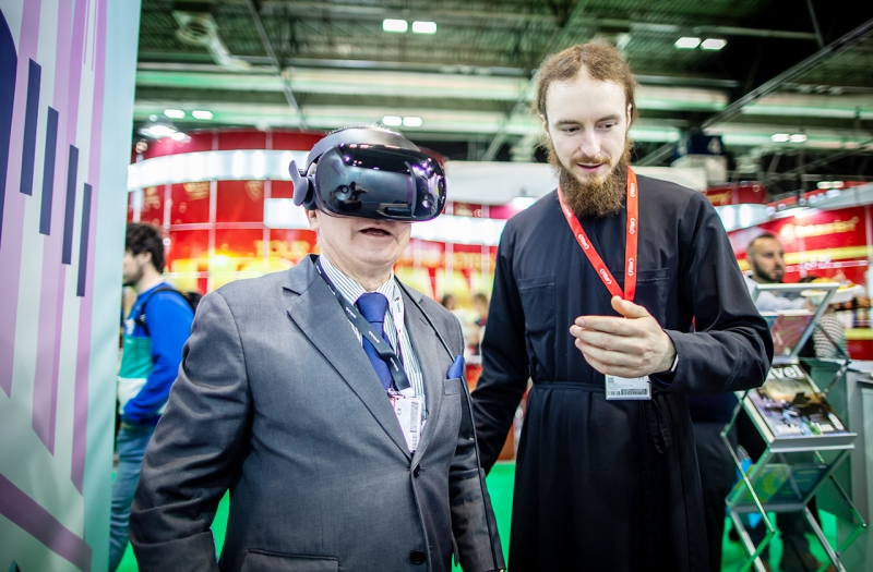 Особый интерес у гостей вызвали интерактивные программы Лавры – посетители стенда могли совершить полет над обителью с возможностью осмотреться вокруг на 360° благодаря шлему VR или же отправиться в виртуальное путешествие по главным храмам обители, погружаясь в ее историю и красоту архитектуры.