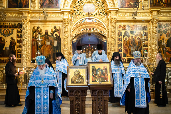 1 сентября Русская Православная Церковь молитвенно благодарит Небесную Царицу за некогда дарованное городу Москве спасение от иноплеменных захватчиков. Вспоминая посланное нашему Отечеству благодеяние, насельники и паломники обители собрались, чтобы прославить чудотворный образ, по молитвам у которого столичный город был спасен от татарского нашествия. В день памяти этого важного для нашей истории события в Успенском соборе обители прошли праздничные богослужения.