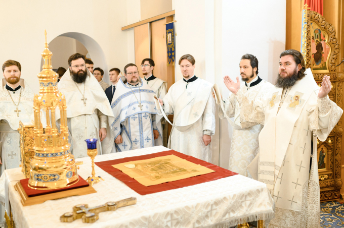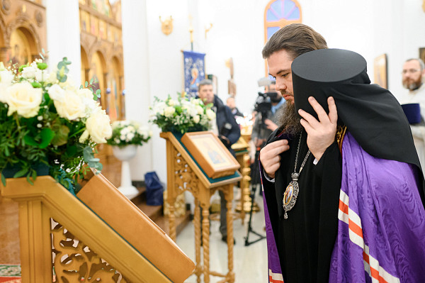 По окончании Божественной литургии настоятель храма протоиерей Александр Суворкин поблагодарил епископа Фому за архипастырский визит и передал ему в дар икону Божией Матери «Всех скорбящих Радость».
