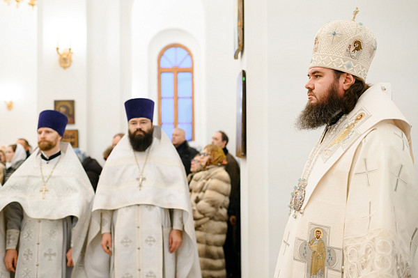 21 января епископ Сергиево-Посадский и Дмитровский Фома совершил Божественную литургию в Казанском храме г. Долгопрудного.