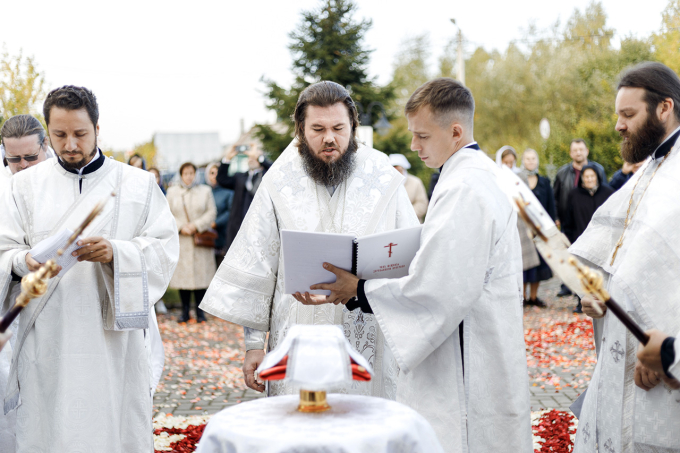 18 сентября епископ Сергиево-Посадский и Дмитровский Фома совершил Великое освящение храма в честь Преображения Господня в п. Запрудня Талдомского г.о. Московской области и Божественную литургию в новосвященном храме.