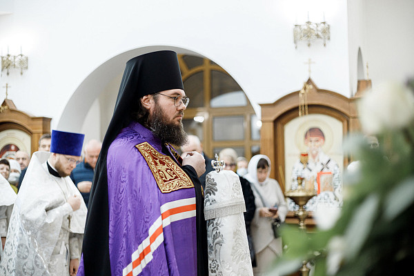 Его Преосвященству сослужили Секретарь Сергиево-Посадской епархии протоиерей Димитрий Оловянников, благочинный Дубненско-Талдомского церковного округа протоиерей Павел Мурзич, благочинный Рогачёвского церковного округа иерей Сергий Сафронов, благочинный Дмитровского церковного округа иерей Алексий Рыженков, а также приглашенное духовенство.
