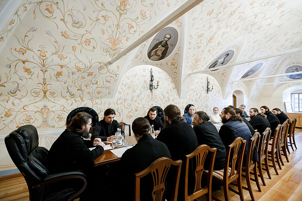 Руководители монастырских служб обсудили вопросы текущей подготовки к празднику, расписание богослужений, прием паломников и гостей и другие организационные вопросы.