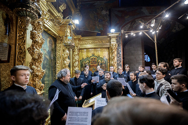 Вечером пели: справа – хор под управлением иеромонаха Нестора (Волкова); слева – хор под управлением иеродиакона Германа (Бурлакова).