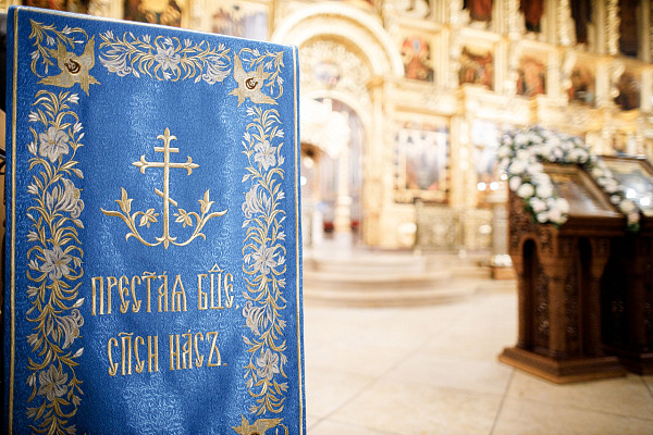 «Днесь храм одушевленный святыя славы Христа Бога нашего, eдина в женах Благословенная Чистая, приводится в храм законный жити во святых; и радуются с Нею Иоаким и Анна духом, и девственнии лицы Господеви поют, псаломски воспевающе и чтуще Матерь Eго».