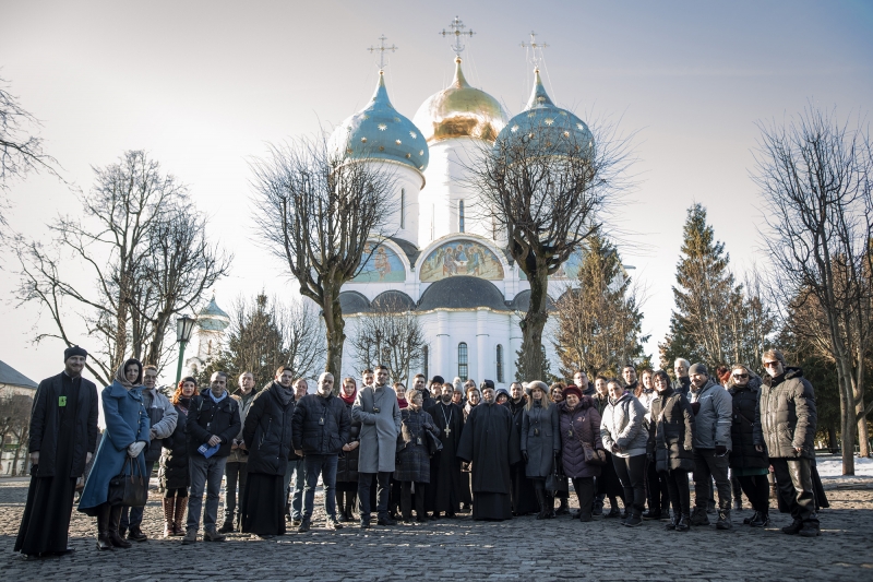 В Лавре гостей встретил заместитель руководителя Паломнического центра иеродиакон Иоанн (Тибанов). Он провел для них экскурсию, в ходе которой прибывшие поклонились мощам преподобного Сергия, побывали в Сергиевском Трапезном храме и Успенском соборе, познакомились с академической библиотекой и прогулялись по территории московских духовных школ. Затем они встретились с епископом Сергиево-Посадским Парамоном в «Трапезных палатах».
