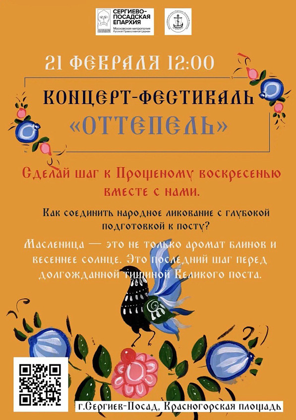 21 февраля в 12:00 на Красногорской площади Сергиева Посада у стен Троице-Сергиевой Лавры состоится православный музыкальный фестиваль «Оттепель».