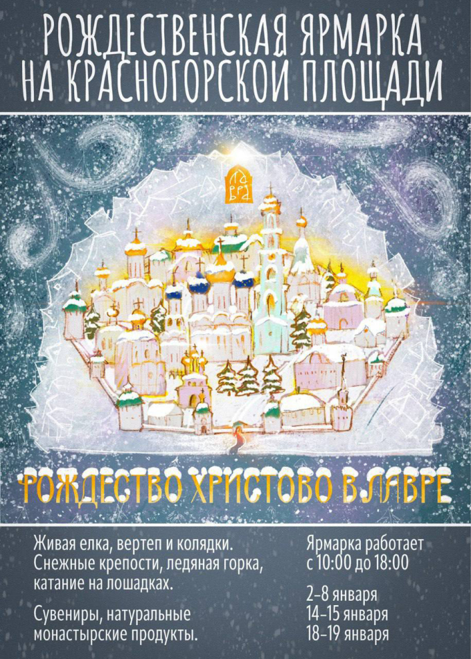 14 и 15 января на Красногорской площади, у стен Свято-Троицкой Сергиевой Лавры, пройдет ярмарка «Рождество Христово в Лавре». График работы: с 10:00 до 18:00.