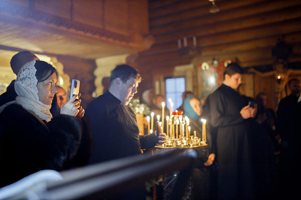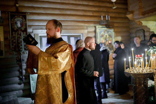 В канун праздника настоятель храма иеромонах Спиридон (Подшибякин) возглавил всенощное бдение с чтением акафиста святителю Спиридону Тримифунтскому.