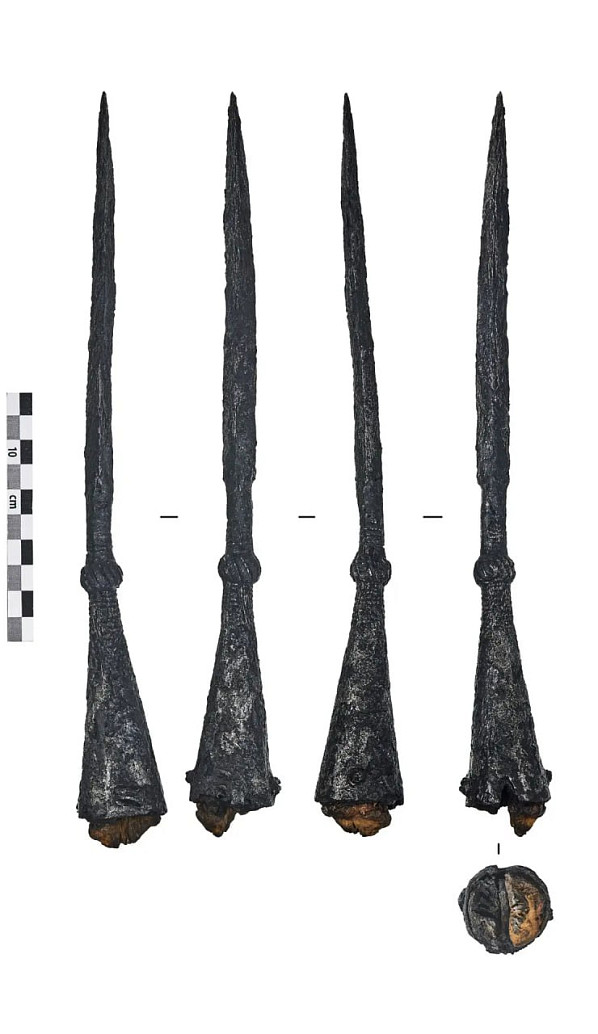 Сохранился также фрагмент древка, к которому наконечник крепился двумя гвоздями.
