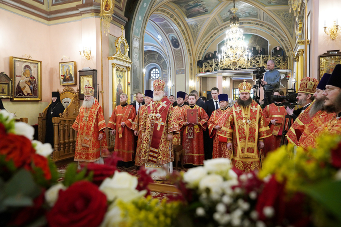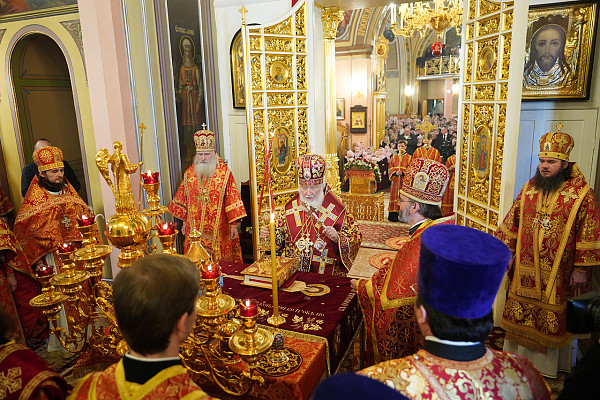 На сугубой ектении были вознесены особые прошения, Предстоятель Русской Церкви прочитал молитву о Святой Руси.