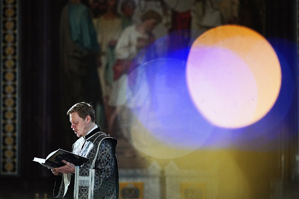 Проповедь перед причастием произнес иерей Артемий Кокош, клирик Храма Христа Спасителя.