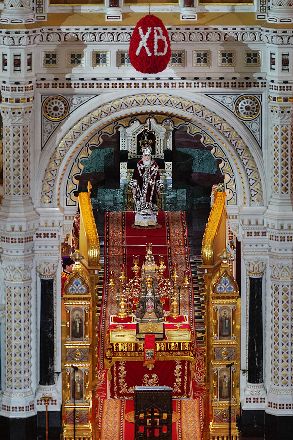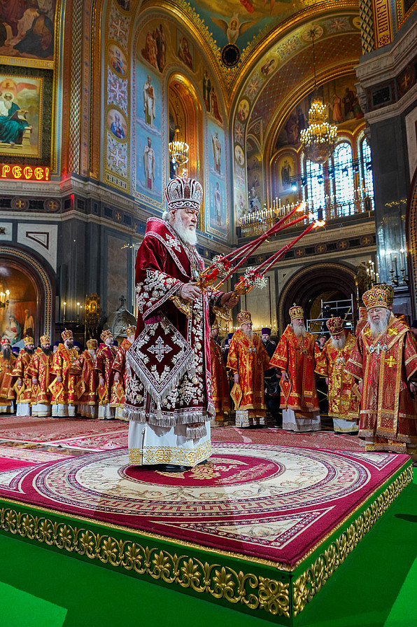 16 апреля 2023 года, в праздник Светлого Христова Воскресения, Святейший Патриарх Московский и всея Руси Кирилл совершил Пасхальную великую вечерню в кафедральном соборном Храме Христа Спасителя в Москве.