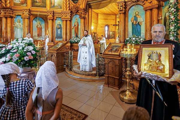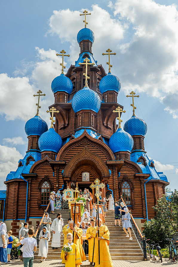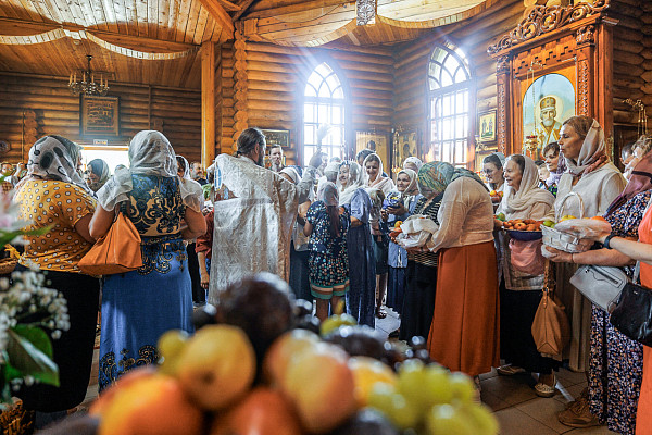 По завершении богослужения состоялся традиционный крестный ход вокруг храма и Первого озера, а также был совершён чин освящения плодов нового урожая.