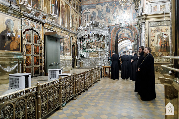 Ночью икону доставили сотрудники Третьяковской галереи. Святыню поместили в специальную витрину, а затем наместник Троице-Сергиевой Лавры епископ Сергиево-Посадский и Дмитровский Фома и ректор Московской духовной академии епископ Звенигородский Феодорит совершили молебен перед иконой.