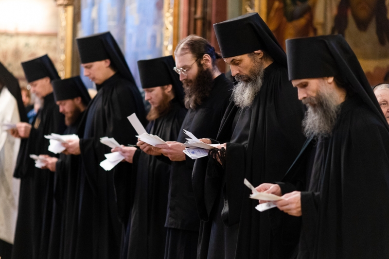 На вечернем богослужении в Успенском соборе пел братский хор, разделенный на два клироса, под управлением игумена Силуана (Баранова) и Луки Масленникова. На Божественной литургии в Троицком соборе – знаменный хор под управлением иеромонаха Зиновия (Бубякина).