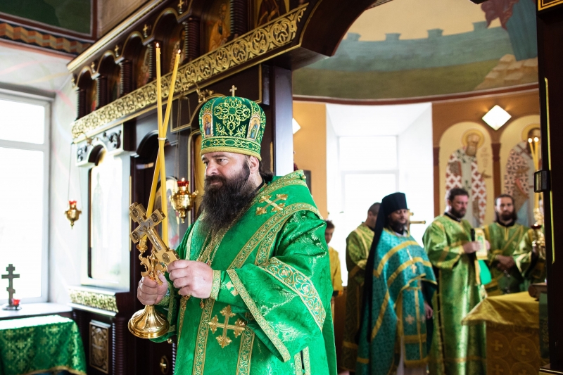 Божественную литургию на Всехсвятском подворье Лавры возглавил наместник обители епископ Сергиево-Посадский Парамон.