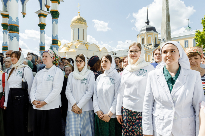 Основное послушание волонтеров — дежурство у мощей преподобного Сергия в Троицком соборе и в Серапионовой палате, а также различная помощь братии обители в эти праздничные дни.