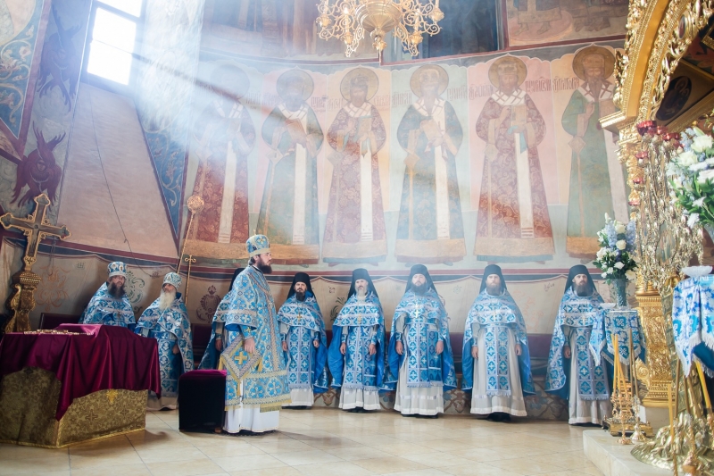 Позднюю Божественную литургию в Успенском соборе монастыря совершил Преосвященный наместник.