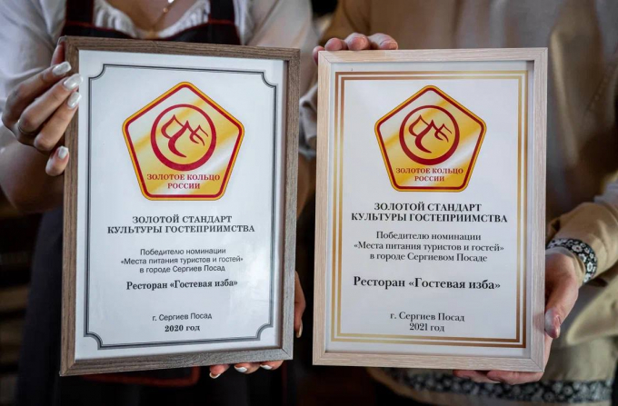 Ресторан-музей русской гастрономии «Гостевая изба» второй раз подряд стал победителем проекта «Золотой стандарт культуры гостеприимства» в номинации «Места питания туристов и гостей» в городе Сергиев Посад.