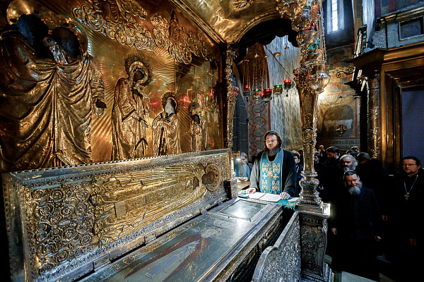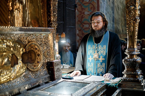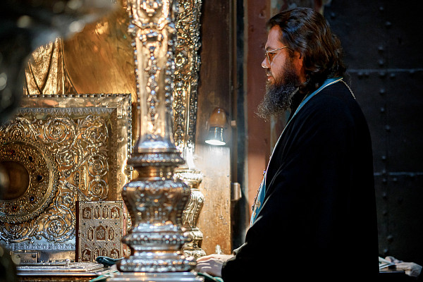 Перед собранием Преосвященный Фома совершил молебен у мощей преподобного Сергия в Троицком соборе.