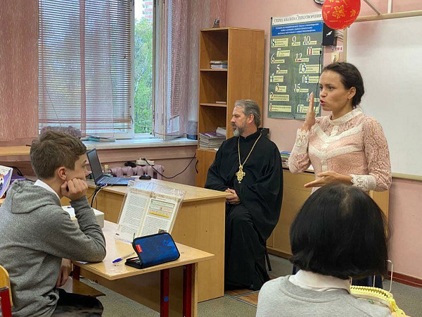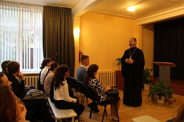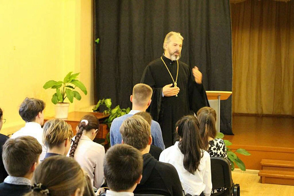 Настоятель храма благоверных великих князя Димитрия Донского и княгини Евдокии Московской иерей Владимир Сухих встретился с учащимися 8–11 классов МБОУ «Ельдигинская СОШ».