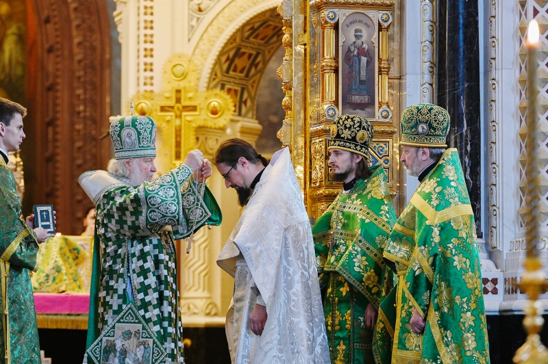 За Литургией Святейший Патриарх Кирилл рукоположил иеродиакона Алфея (Зимнова), насельника Троице-Сергиевой Лавры, в сан пресвитера.