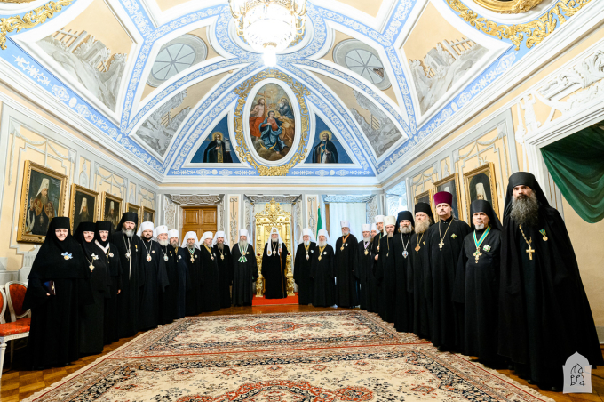 «Всех сердечно поздравляю, особенно награжденных, с праздником и с наградами. Награда церковная не выдается просто так, по выслуге лет — всегда она связана с конкретным вкладом награждаемого в церковную жизнь, и всех награжденных я благодарю за ваши труды. Желаю помощи Божией, крепости сил, чтобы Господь каждому из вас помогал на том месте, куда он призван свыше, нести достойно служение во благо Церкви и Отечества нашего».