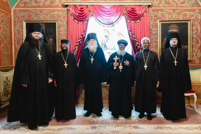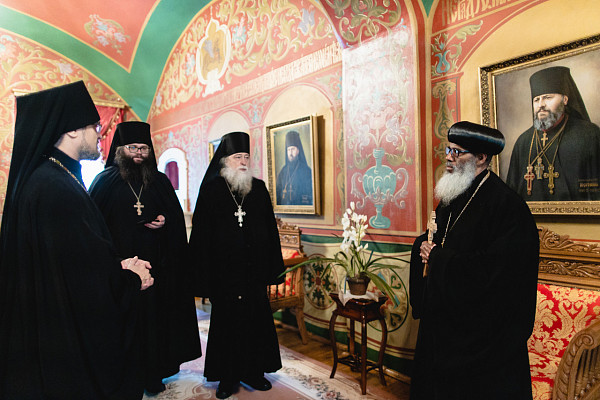 Гостей из Эфиопской Церкви сопровождали сопредседатель Комиссии по диалогу между Русской Православной Церковью и Эфиопской Церковью митрополит Клинский Леонид, секретарь ОВЦС по межхристианским отношениям иеромонах Стефан (Игумнов), сотрудники ОВЦС иеродиакон Пётр (Ахматханов) и Р.О. Обросов.