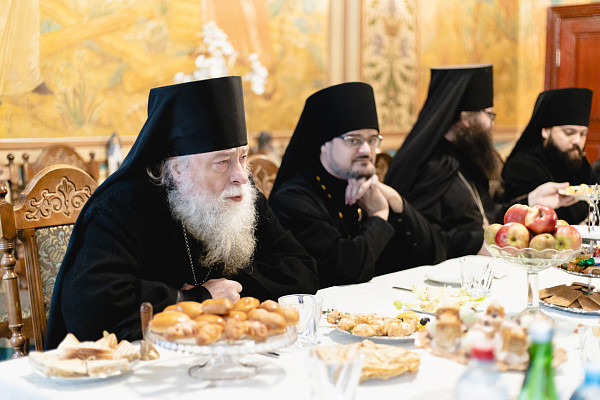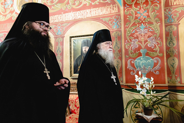 По приезде в обитель преподобного Сергия высоких гостей встретил насельник Лавры архимандрит Макарий (Веретенников). Он передал приветствие наместника монастыря епископа Сергиево-Посадского и Дмитровского Фомы.