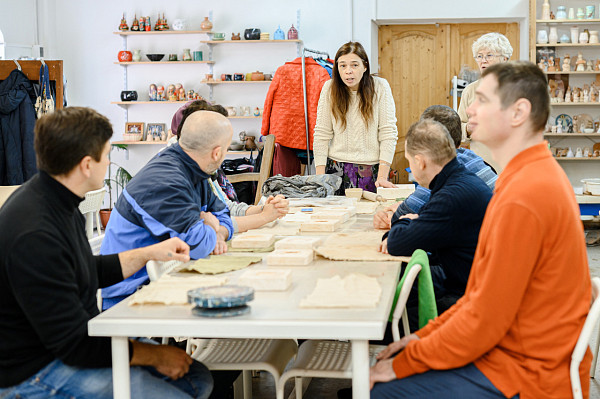 Социализацию молодых людей с ментальной инвалидностью невозможно представить без приобретения трудовых навыков, которые формируются на практических занятиях. Поэтому в Троицком доме ремесел при Троице-Сергиевой лавре ребята познакомились с древними секретами изготовления и росписи керамических изделий, а также с изготовлением свечей. Гости работали совместно с мастерами: Ю.В. Сергеевой, Т.В. Соколовой, М.Ю. Колбинцевой, Н.Г. Поповой, А.Э. Порфилкиным.