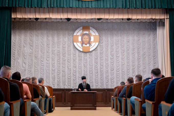 После общей трапезы гости встретились с наместником Троице-Сергиевой Лавры епископом Сергиево-Посадским и Дмитровским Кириллом в Большом актовом зале Московской духовной академии. Во время встречи гости смогли пообщаться с Преосвященным владыкой и получить ответы на волнующие их вопросы.