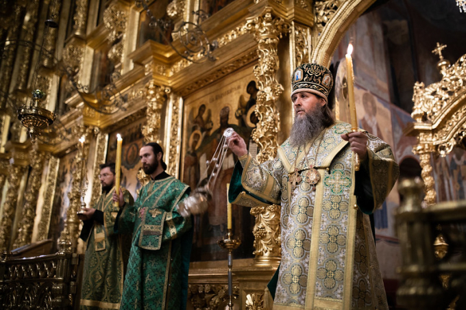 На Литургии пел хор под управлением игумена Антония (Зинина).