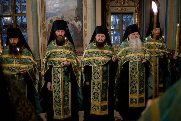 Утром пел знаменный хор под управлением игумена Антония (Зинина).