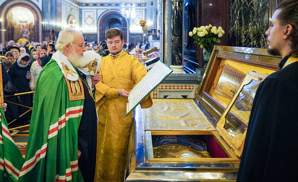 Святейший Патриарх Кирилл совершил славление и молитву у мощей святителя Филарета, после чего обратился к участникам богослужения с Первосвятительским словом.