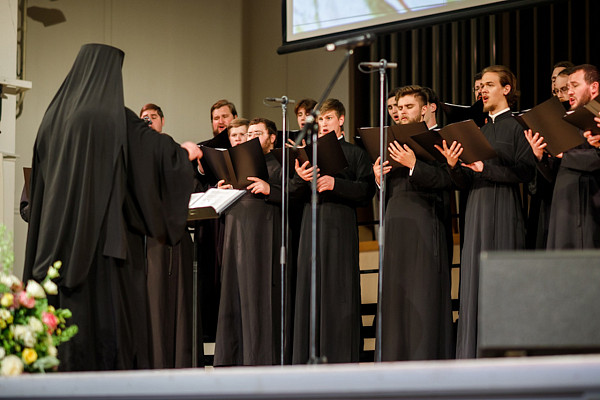 В исполнении хора под руководством иеромонаха Нестора (Волкова) прозвучали духовные песнопения в лучших певческих традициях Троице-Сергиевой Лавры.