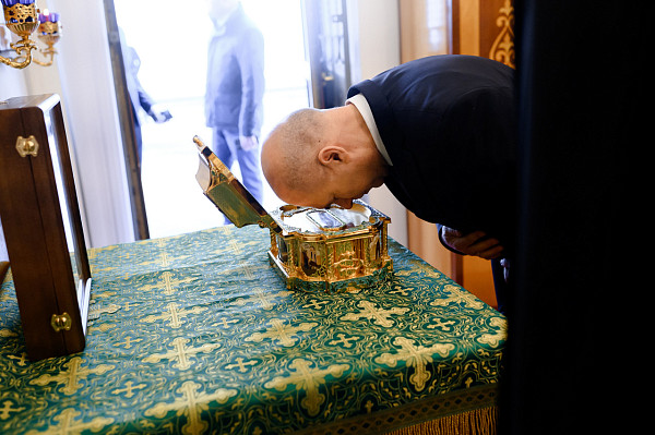 Затем все желающие приложились к мощам святого и получили на молитвенную память иконы с благословением Святейшего Патриарха Московского и всея Руси Кирилла.