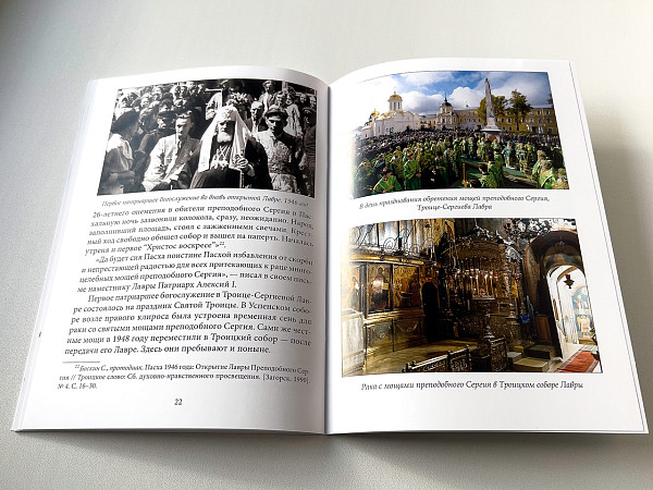 За шесть столетий у честных мощей преподобного Сергия сложилась своя история. Как жизнь самого Преподобного была наполнена скорбями, трудностями и испытаниями, так и история его мощей имеет свои трагические страницы, которые тем не менее только подтверждают святость подвижника и данную ему Богом свыше особую благодатную силу укреплять, просвещать и врачевать душевные и телесные недуги. В издании «Днесь наста обретение чудотворных мощей…» приводятся наиболее яркие страницы этой истории – от обретения честных мощей и до настоящего времени.