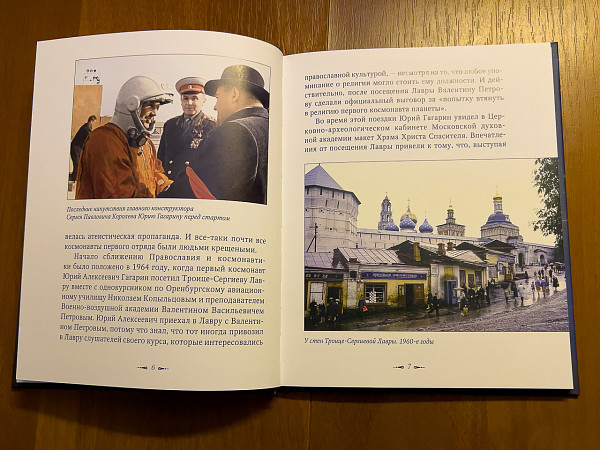 В настоящем издании представлена удивительная история появления храма в центре средоточия космической науки. В нём рассказывается о том, как начиналось сближение Православия и космонавтики, как первый космонавт Юрий Алексеевич Гагарин посетил Троице-Сергиеву Лавру и что из этого вышло. Представлены предпосылки и история появления храма в Звездном, описываются уникальные архитектурные особенности церкви.