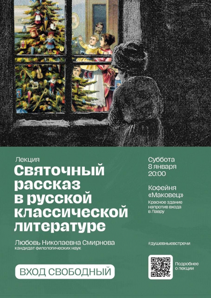 8 января, в субботу, в 20:00 в кофейне «Маковец» на Красногорской площади (красное здание напротив входа в Лавру) состоится открытая лекция на тему «Святочный рассказ в русской классической литературе».