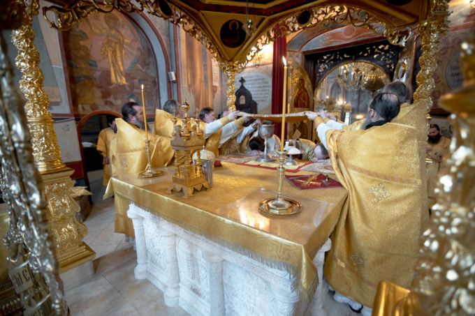 На богослужении пел хор под управлением игумена Антония (Зинина).