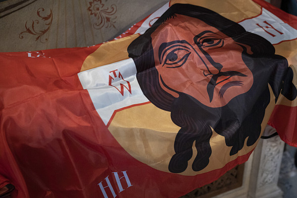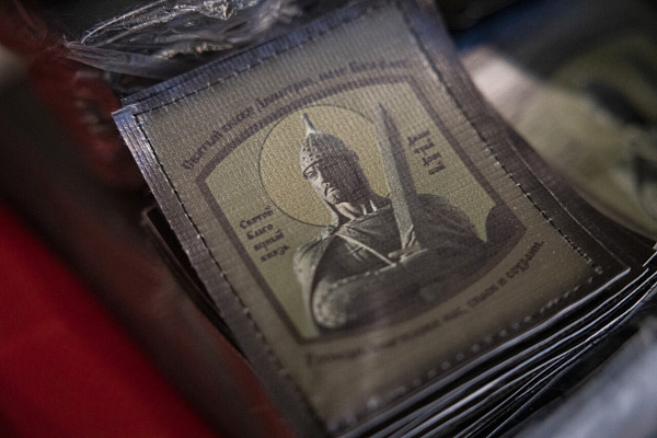 Знамена и шевроны с изображениями Спасителя и святого благоверного великого князя Димитрия Донского были подготовлены участниками общественной группы «Помощь нашим» и переданы в Лавру для их последующего освящения.