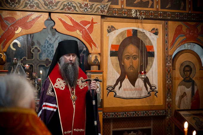 СПРАВКА: Вечернее богослужение в храме Нерукотворного Образа Спаса на подворье Лавры в селе Деулино возглавил епископ Сергиево-Посадский и Дмитровский Кирилл. Ему сослужили настоятель подворья архимандрит Виктор (Сторчак) и братия Лавры в священном сане.