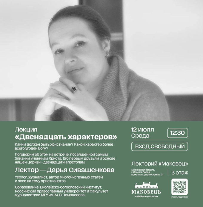 12 июля в 12:30 в ресторанном комплексе «Маковец» пройдет встреча на тему «Двенадцать характеров», которая будет посвящена самым близким ученикам Христа, Его первым друзьям и основе нашей Церкви — двенадцати апостолам.