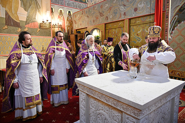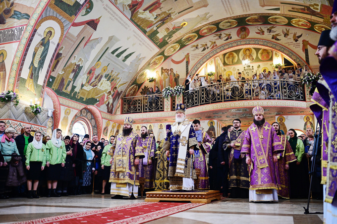 По завершении Литургии было совершено поклонение Честному и Животворящему Кресту Господню.