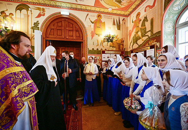 После сугубой ектении Святейший Владыка вознес молитву о скорейшем восстановлении мира. По благословению Его Святейшества молитва совершается во всех храмах Русской Православной Церкви.