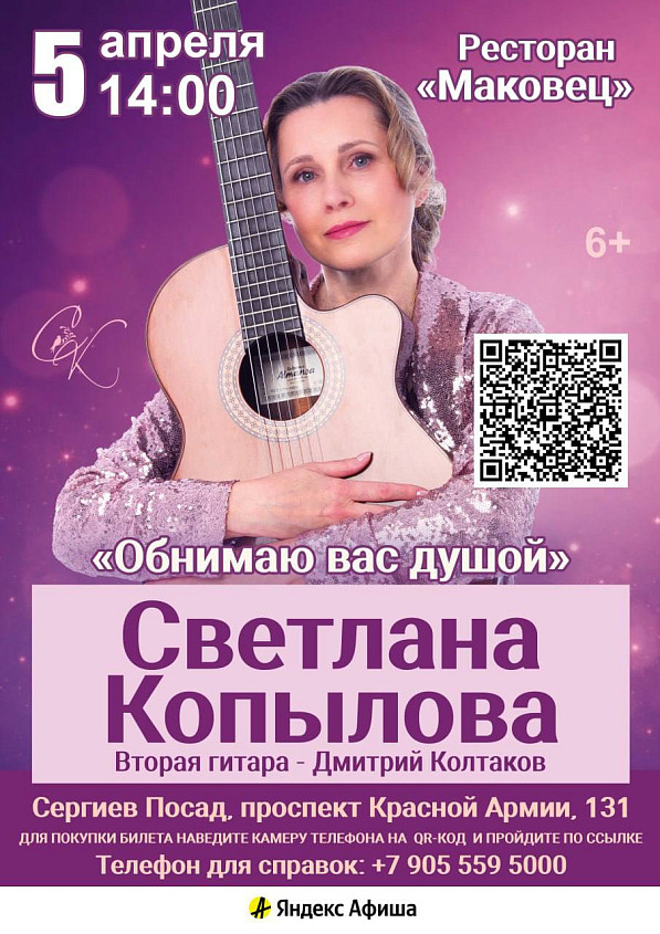 5 апреля 2026 г. в ресторанном комплексе «Маковец» пройдет концерт автора-исполнителя Светланы Копыловой.