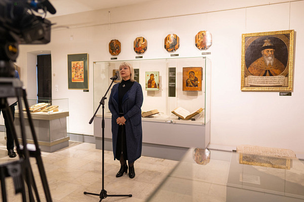 «Мы очень рады видеть вас на открытии этого значимого для музея проекта. Я напомню, что Сергиево-Посадский государственный историко-художественный музей-заповедник более 100 лет хранит уникальную коллекцию и собрание Троице-Сергиева монастыря. Большую ее часть составляют вклады русских государей, московских великих князей, царей и императоров. Эта тема была всегда приоритетной для наших экспозиций, выставок и для исследовательской работы наших научных сотрудников. Но эта тема настолько глубокая и неисчерпаемая, что всегда находятся ее новые аспекты.